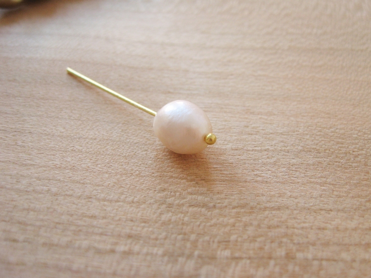 I strung together a pearl with a couple of bead caps on a head pin to see how it looked. Bead caps are a nice way to dress up your beads, or to manage beads with large or chipped holes.