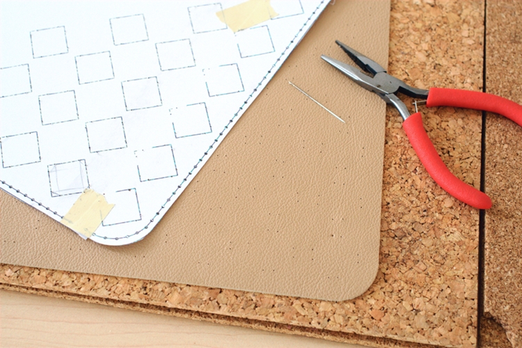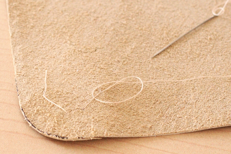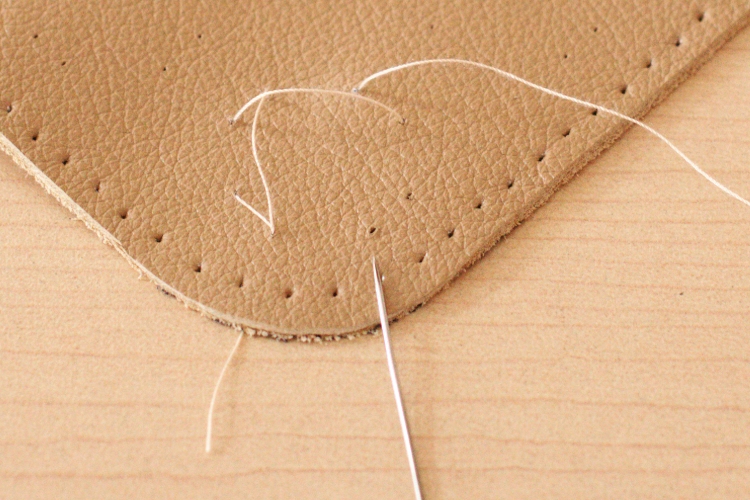 Mark your material in a way appropriate for what you are working with. I’m working with leather and pre-punched my stitching points.