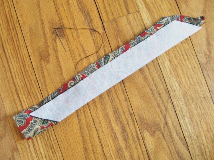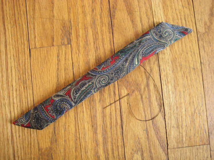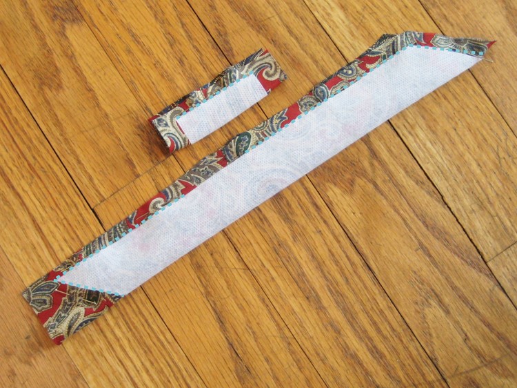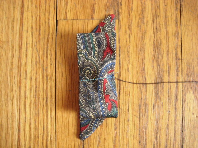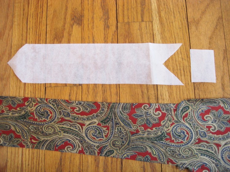 I used the narrow tail end of the silk from a necktie. I’ve included my measurements, but be sure that these pieces will fit on the fabric you have before cutting. It should be easy enough to make adjustments if need be!