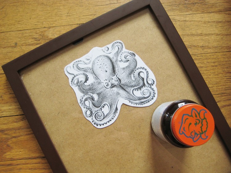 Trim the image out with a bit of margin. Glue it to the glass with a smooth, consistent coat of rubber cement. Be careful not to get rubber cement on the front of the image. Allow this to dry completely before proceeding.