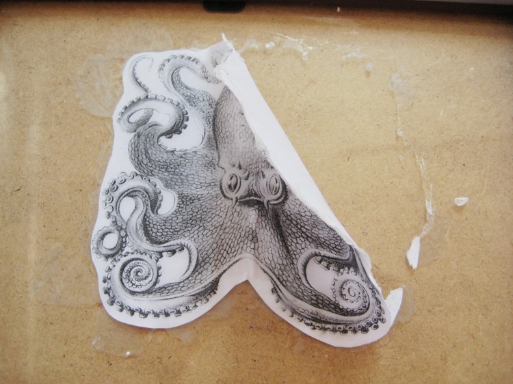 Flip the transfer over and remove as much of the rubber cement as possible.