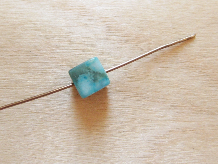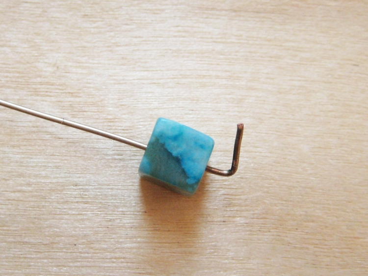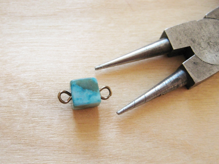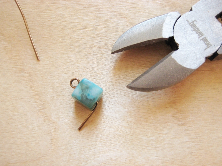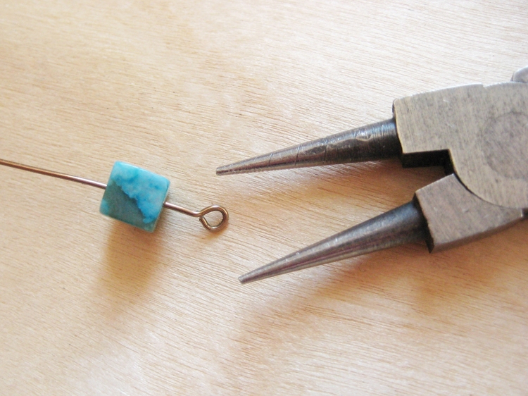 Slide the bead up to the loop and bend the other end of the wire at 90º, making sure the bend is as close to the bead as possible.